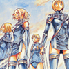 Description: Claymore's Clare, Miria, Helen & Cynthia in black leather