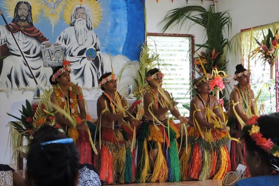 At one time, interviewees reported, all the parishes and sub-parishes in Yap created their own dances. Some parishioners were resistant to them, having been taught that dance was incompatible with church. Some discontinued the dances over time, but interviewees reported that one sub-parish, on Maap, one of the four main island-villages of Yap, uses dance for catechetical instruction outside of the liturgy. The themes of these dances, they reported, include Adam and Eve, the Mother of God, Fatima, and John the Baptist. As Throop discovered in his exploration of secular dance forms in their original context on Yap, Yapese believe that the embodiment of the dance is the perfect way to teach the lesson. As one Yapese told him, “By striving to learn the dance inside the body, it will not ever be forgotten.”10