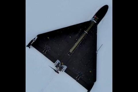 The normally shoulder-fired missile is mounted on the forward dorsal section of the delta-wing UAV, located just behind the nose section that typically carries an explosive warhead for striking ground targets.