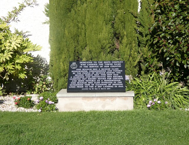 A black marble plaque was unveiled in 2017 in the Clock Garden in memory of the crew of HMS Seaham Link